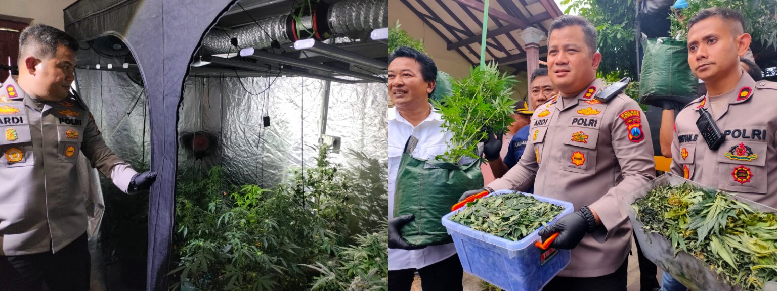 “Rumah ini dimodifikasi secara khusus. Selain kamar, dapur dan kebun belakang juga dimanfaatkan untuk menanam ganja. Bibit ganja ini diduga berasal dari luar negeri yang dibeli melalui media online,” jelas AKBP Ardi Kurniawan saat konferensi pers.