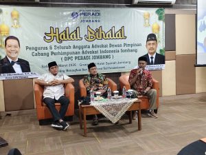 Warsanusantara.com – Dewan Pimpinan Cabang Perhimpunan Advokat Indonesia (DPC PERADI) Jombang, masih dalam suasana Idul fitri 2026 menggelar acara silaturahmi dan Halal bihalal bertempat di Hotel Green Red Jombang. Sabtu (28/3/2026) atau bertepatan dengan kalender hijriyah 7 syawal 1447 H)